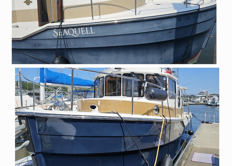 Our comprehensive service addresses every inch of your vessel. We perform a thorough wash-down, remove hard-water spots, rust, mold, and restore surfaces to their best condition. Included: glass and stainless polishing with protective seals, cleaned hatches and compartments, canopy/bimini detailing, deep-clean of vinyl cushions, non-skid restoration, and full exterior detail with premium wax or sealant. The result: a pristine, top to bottom protected yacht restored to showroom condition. Each vessel is uniquely assessed based on it's condition to ensure accurate quoting.